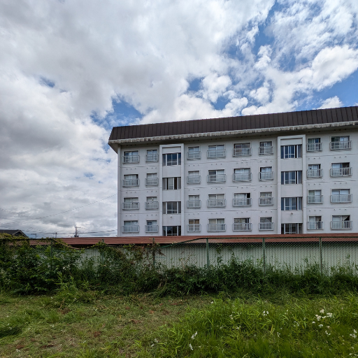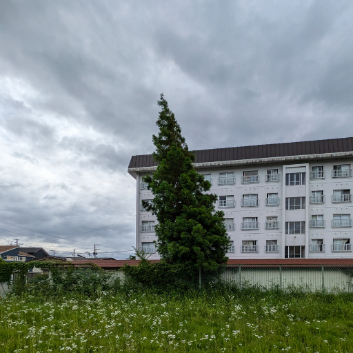 盛岡市営アパートの長さ15m超えの木を伐採致しました。フェンスと倉庫の間にある高木のため、上から少しづつ切り分けて進め施工完了致しました。